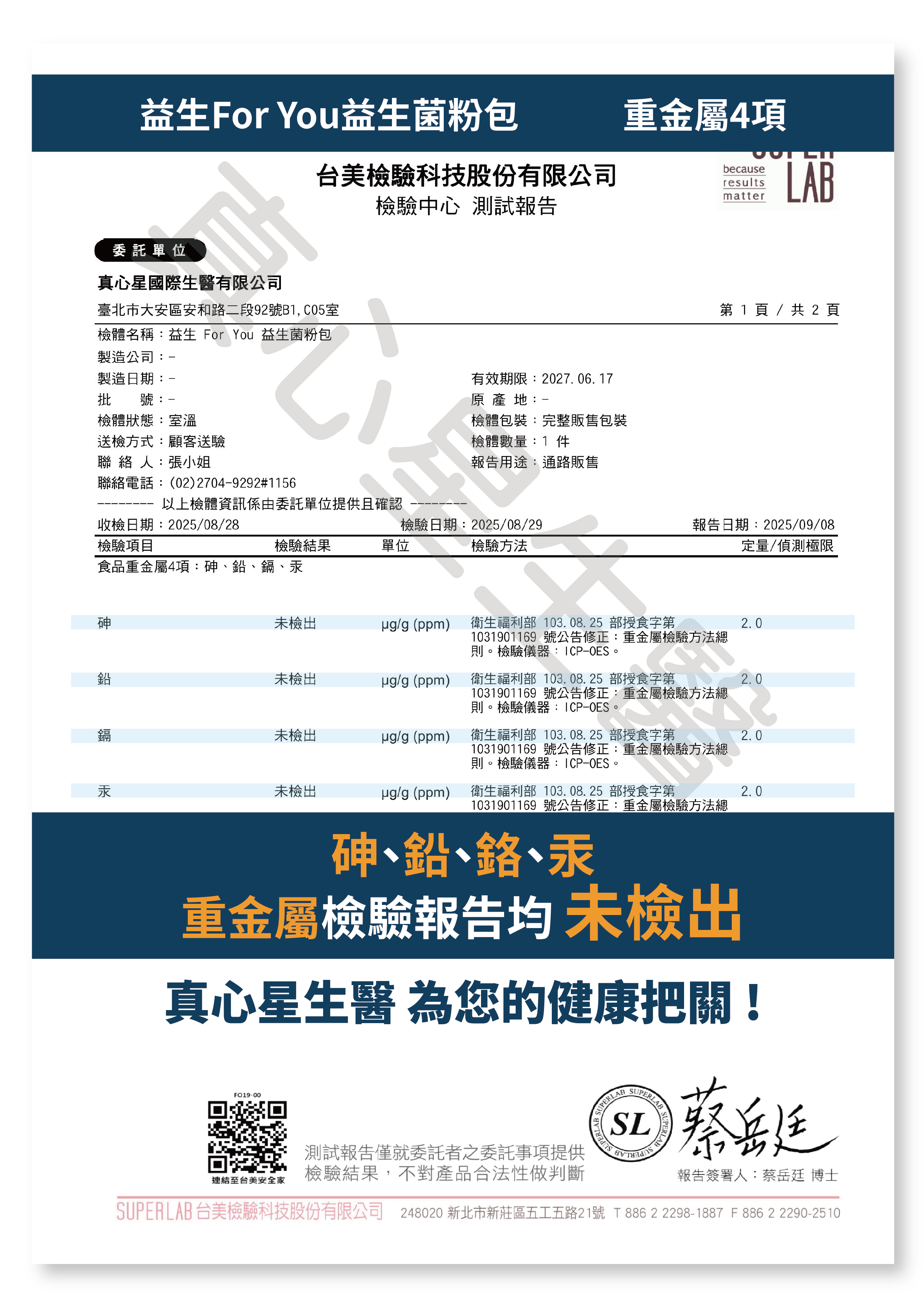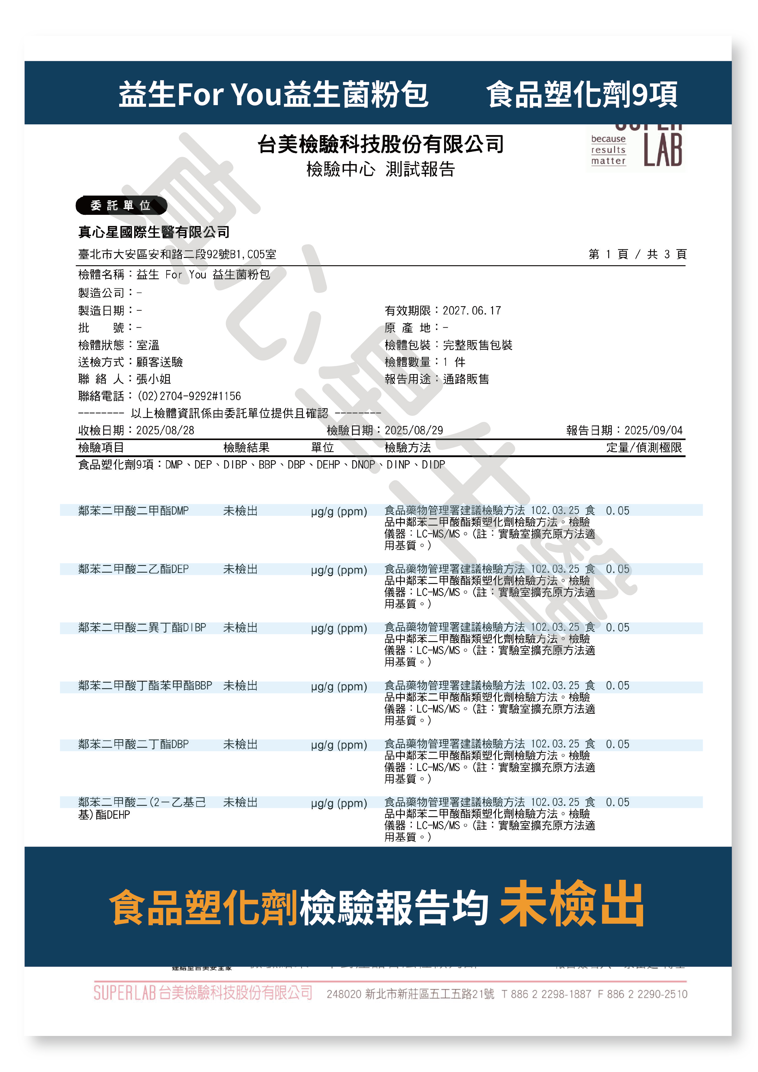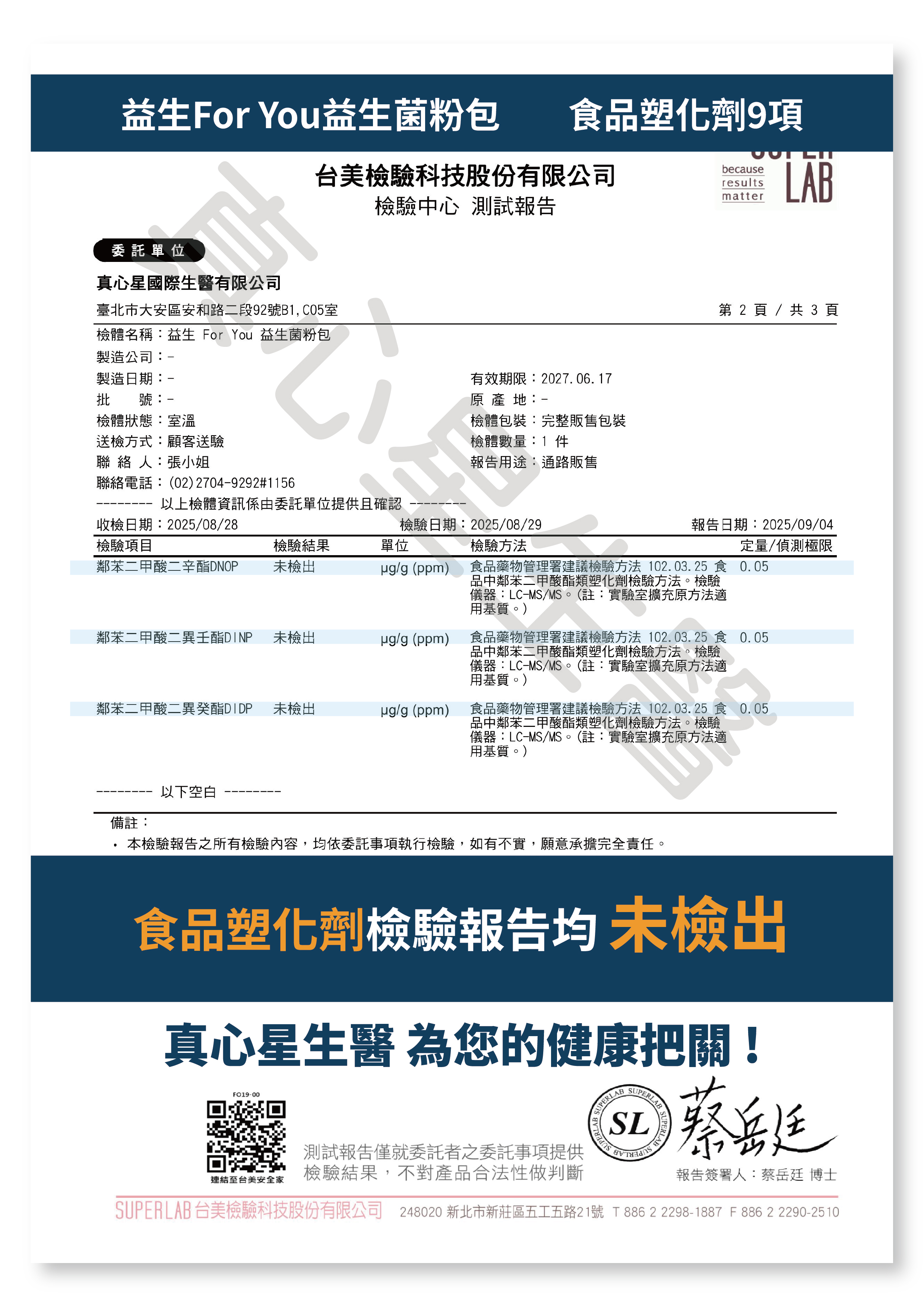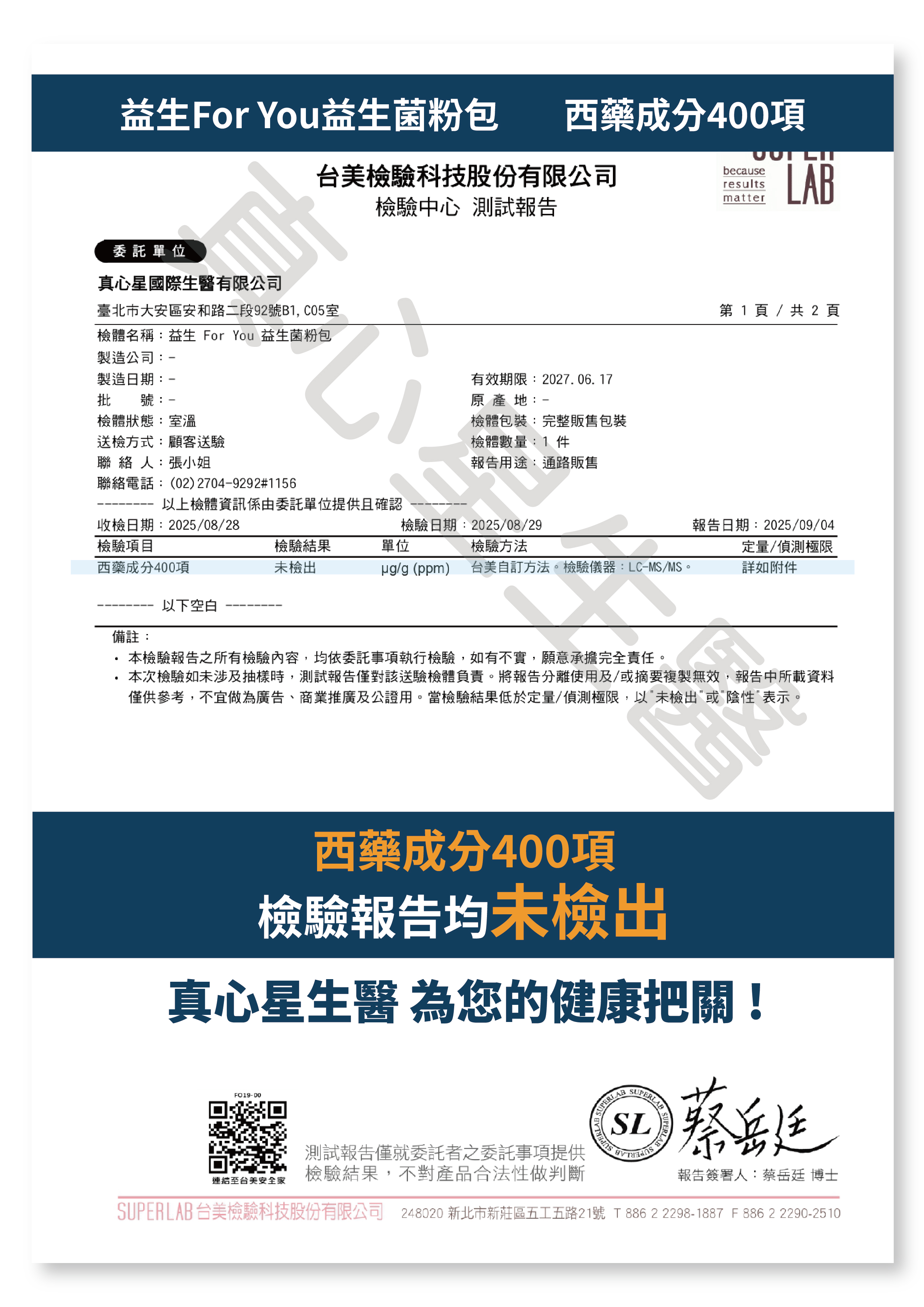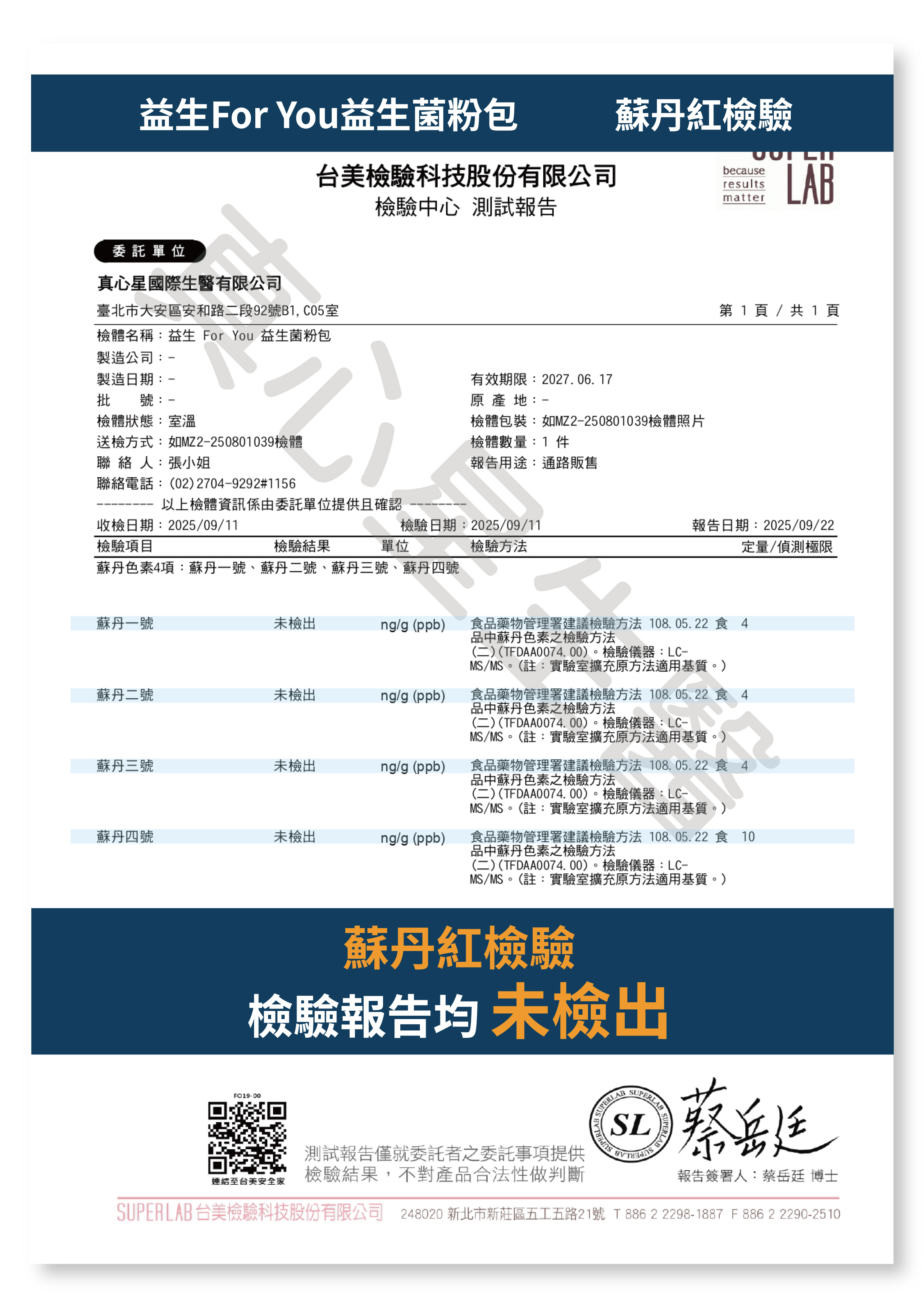 近期我們主動將產品送去第三方公正單位檢驗,結果出爐——每包實際菌數高達2340億CFU!